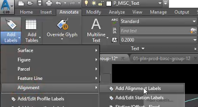 Annotate tab > Labels & Tables panel > Add Labels > Alignment > Add Alignment Labels