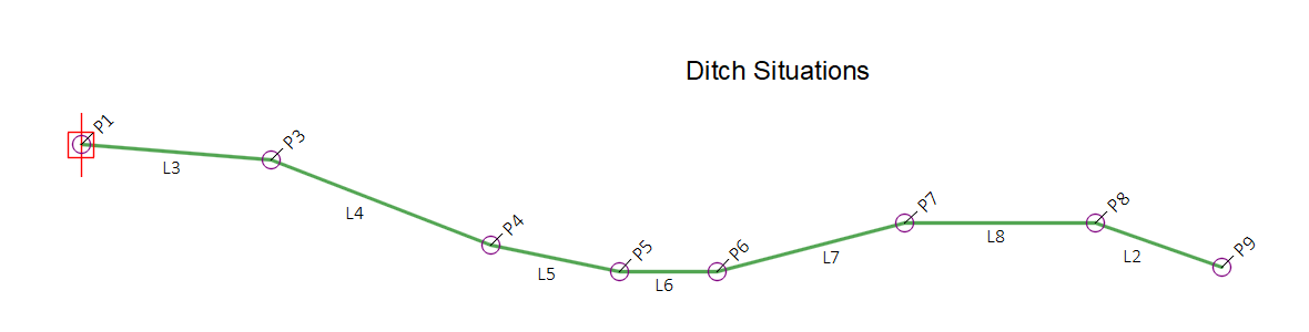 | Ditch bottom width from profile | Object that defines the width of the ditch bottom for a flat bottom ditch by its elevation value | Optional |