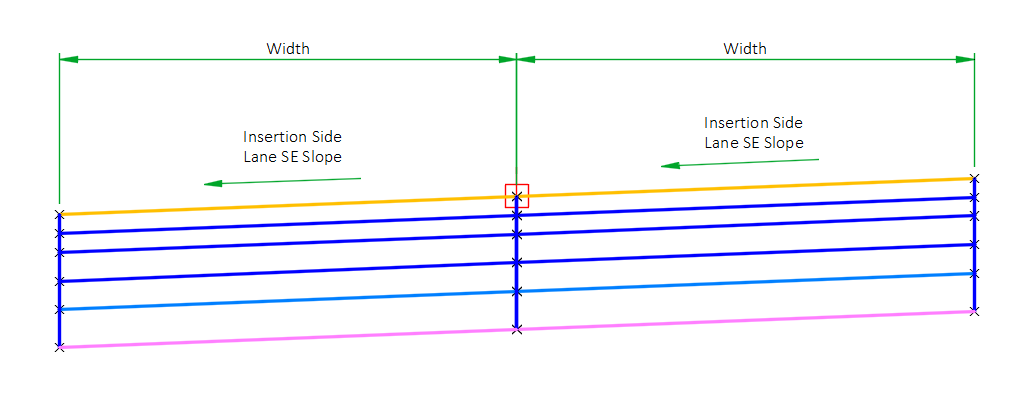 | Lane width | May be used to override the fixed lane width and tie the edge of a lane to an offset object. If insertion side is right, the object must be located to the right of the attachment point. If insertion side is left, the object must be located to the left of the attachment point. The following object types can be used as targets for specifying the width: alignments, polylines, feature lines, or survey features. | Optional |