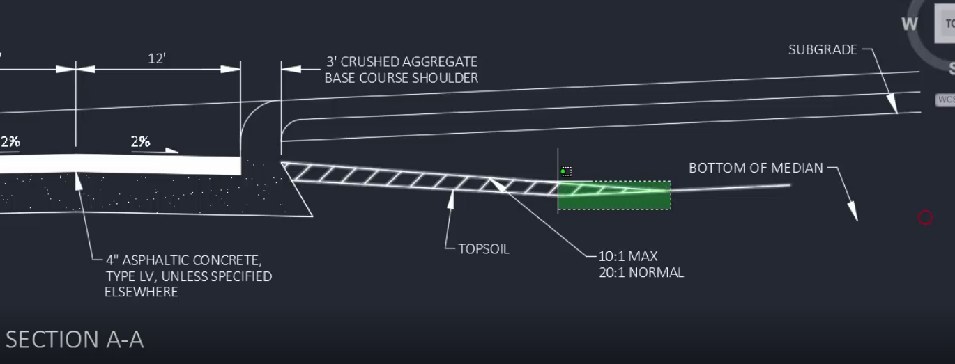 - Select CRUSHED AGGREGATE BASE COURSE SHOULDER Line on left side of SECTION A-A detail
