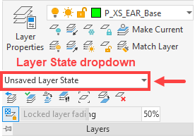 - Ribbon > Home tab > Layers panel flyout > Layer State dropdown > New Layer State