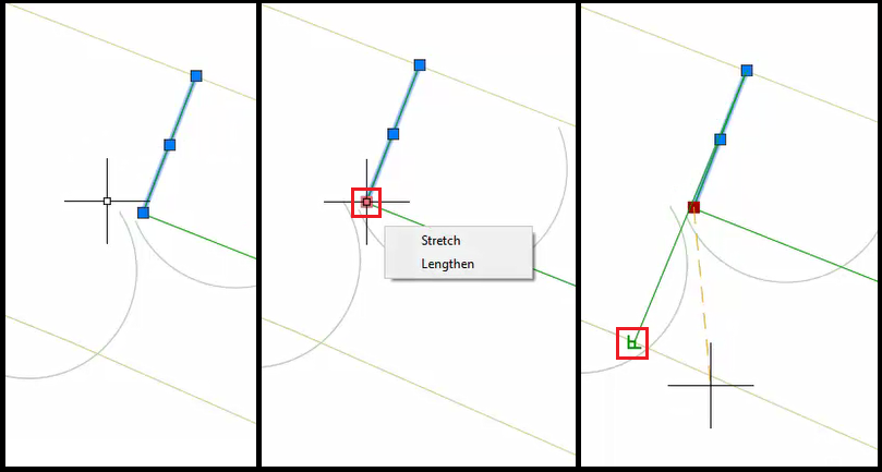 - Specify first point:Shift + right-click > menu > Midpoint OSnap Select the line that was just created.