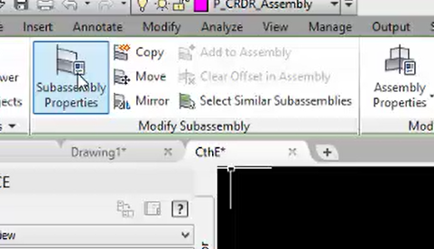 - Contextual ribbon > Modify Subassembly panel > Copy