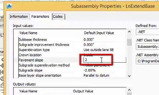 Contextual ribbon > Modify Subassembly panel > Subassemby Properties