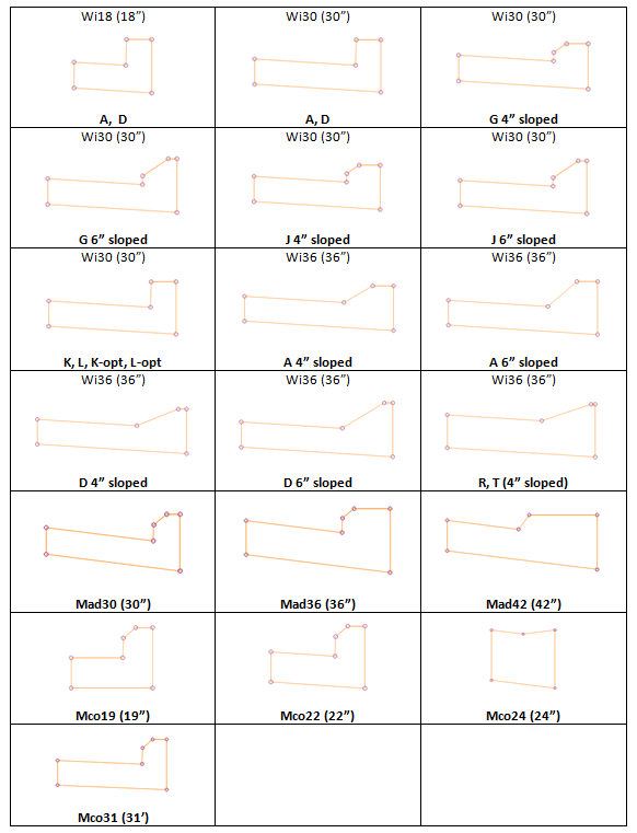 Combo List of options: A ; D ; G 4" curb sloped ; G 6" curb sloped ; J 4" curb sloped ; J 6" curb sloped ; K ; K optional curb ; L ; L optional curb; TBT/TBTT |